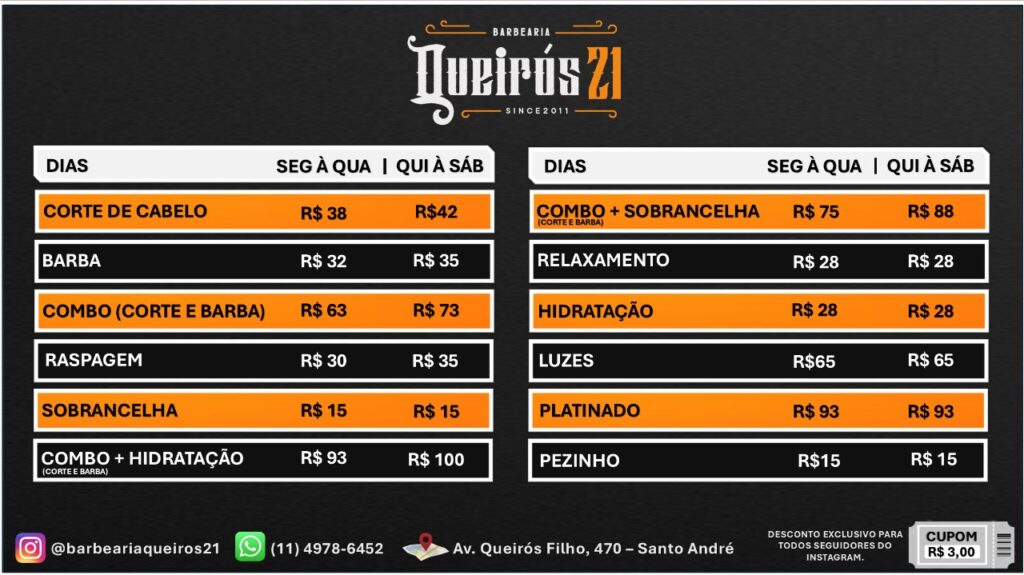Experimente a diferença que a qualidade faz. Entre em contato conosco hoje mesmo e agende seu horário na barbearia Queros 21.